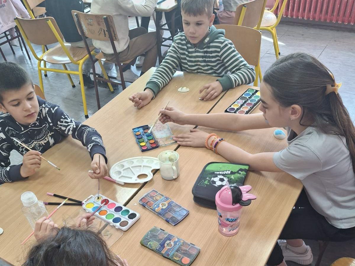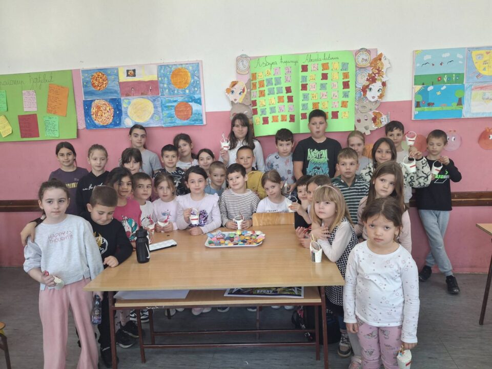 Данас су нашу матичну школу посетили предшколци из вртића “Симба” из Поповца. Заједно са ученицима млађих разреда, учествовали су у ускршњој радионици коју су припремиле учитељице Оливера Мркаљ и Тамара Ивковић. Разговарали су о предстојећем празнику, са пажњом одгледали кратак видео о обичајима везаним за Ускрс и Велики петак. Деца су уживала у осликавању гипсаних јаја магнета. Атмосферу су употпуниле ускршње песме, а за крај дружења – поклон корпице изненађења.